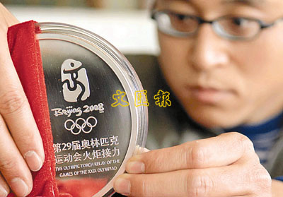 ■京奧火炬接力紀念章即將上市發行。 中新社