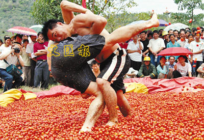 番茄池摔跤 (圖)