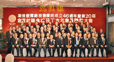 【本報訊】(記者 沈清麗)潮僑塑膠廠商會有限公司日前舉行成立46周年紀念暨第20屆會董就職典禮。中聯辦副主任周俊明、全國僑聯副主席莊世平、經濟發展及勞工局常任秘書長鄧國威、全國政協委員呂明華、香港潮屬社團總會創會主席陳偉南蒞臨擔任主禮嘉賓。新任會長朱其崑在就職致辭時表示,祈望今屆同仁團結一致,真誠合作,共同將該會發揚光大。