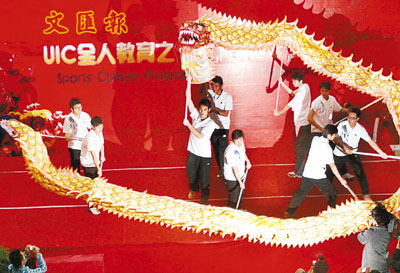 ■龍獅班學生在UIC的全人教育之體育文化啟動儀式上演出。本報珠海傳真