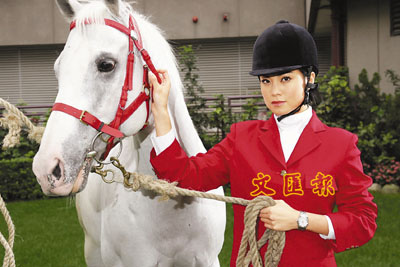 ■廖碧兒手牽純白名駒,形態亮麗。