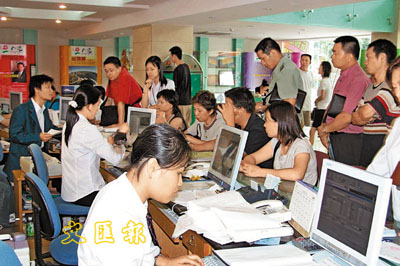 ■國家旅遊局將在五月起,用半年時間,派出「神秘質量監督員」,抽查香港和內地經營赴港遊旅行社有否違規。圖為廣州居民在當地旅行社報名參團。資料圖片