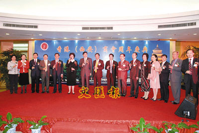 ■西安市長陳寶根(左七)、常務副市長董軍(左五)、副市長岳華峰(右八)、政協副主席于小文(左六)等西安市領導,與香港(西安)商會會長曾智雄(左八)、常務副會長趙紅專(左四)等共同出席商會周年慶典。本報記者段維 攝