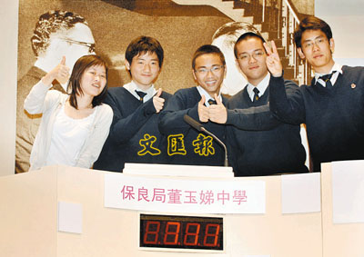 ■保良局董玉娣中學學生於小組取得第一名,晉身總決賽,師生均感到十分高興。本報記者李志樑 攝