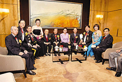■(左起)陳延邦、黃德倫、李國華、馮丹藜、莊世平、張德榮、胡德平伉儷、曾慶玲、鮑幗潔及馬惠強合影。