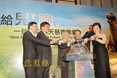 ■主禮嘉賓(左起)馮浩榮、曾廣玲、莊老、胡德平及馮丹藜主持揭幕儀式。