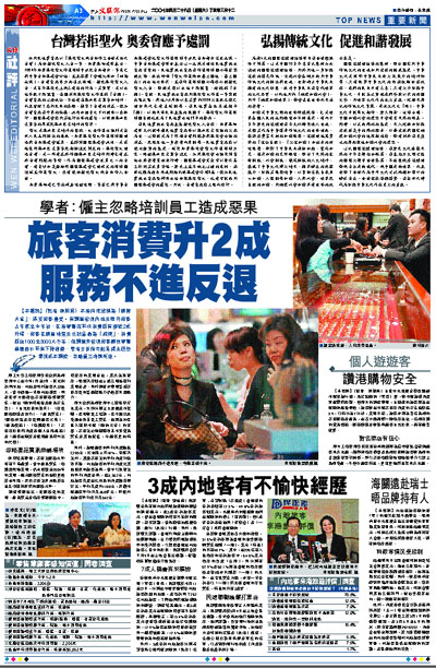 【本報訊】(記者 陳朗昇)本港向來被稱為「購物天堂」,深受旅客喜愛。有調查發現內地及海外旅客去年底至今年初,在港零售店平均消費額有接近2成升幅,旅客在購買珠寶及化妝品最為「疏爽」,消費額由1000至5000元不等;但調查亦發現旅客感到零售業服務水平有下降趨勢,學者分析指可能是僱主過份重視成本調控,忽略員工培訓所致。