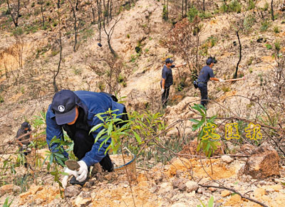 ■漁護署人員正展開植樹行動,大欖郊野公園可望回復舊貌。本報記者聶曉輝 攝