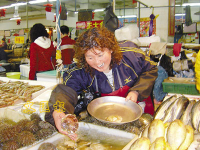 ■大連的水產品市場,鮮活扇貝甚暢銷。本報記者大連傳真