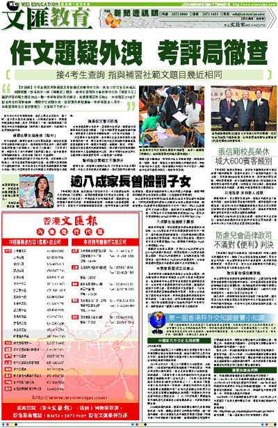 考評局昨日發表聲明,表示局方已注意到有關作文題目被指外洩一事。局方重申公開考試各卷試題的審題委員會在草擬題目時,過程非常嚴謹,由擬題、審定、印刷、包裝及分發各程序均經嚴格監控,局方絕不會聘用與補習學校有關的人員參與擬題的工作。局方呼籲考生或任何人士應向局方提供實質資料,以便作進一步跟進。