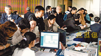 ■內地熱錢充斥,股市火爆。圖為大批合肥市民在一家證券營業部等待開戶。新華社
