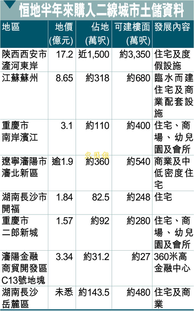 恆地半年來購入二線城市土儲資料 (圖)