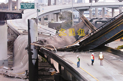 坍塌的高架橋將三條高速公路接入海灣大橋,後者每日有28萬車次使用,是三藩巿連接屋崙、伯克利和其他城巿及灣區東面巿郊的主要交通樞紐。今次意外或會成為美國繼洛杉磯後,20年來第二大嚴重交通擠塞事故。加州州長阿諾舒華辛力加宣布多項緊急措施,紓緩昨日繁忙時間的交通。