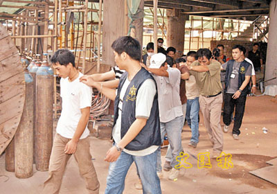 ■澳門黑工情況嚴重,圖為警方採取行動,到酒店地盤將黑工帶走。資料圖片