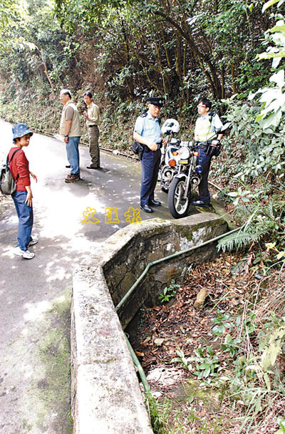 ■老翁自山頂倒行落山、不慎墮水坑受傷,警員到場調查。