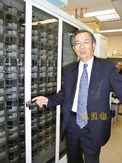 ■李伯偉獲頒醫管局傑出員工獎,身旁是價值150萬元的執藥丸機。本報記者李見安 攝