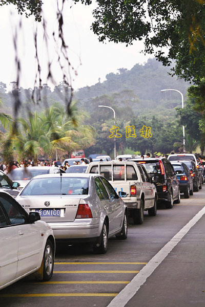 ■「五一」期間大批外地人駕車前往珠海旅遊度假,造成著名的珠海情侶路大塞車。本報駐珠海實習記者王希 攝