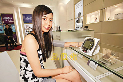 ■每人應該每天都要定時測量血壓,Ceci在示範正確的使用方法。