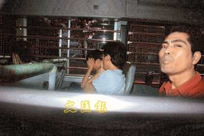 ■16歲中學生(以手掩面者)馮駿琪被控強姦女網友罪成,判囚40月。資料圖片