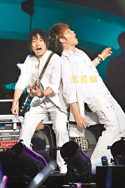 【本報訊】台灣組合「五月天」一連兩場「離開地球表面」世界巡迴演唱會,前晚假紅館開鑼,雖然首晚演唱會僅得七成的上座率,也無損五月天演出的興奮心情,觀眾反應一樣很熱烈,不時揮動手上的熒光捧,情緒高漲,最後在觀眾要求下,五月天兩度「安哥」,演唱會至十一時四十五分才結束。