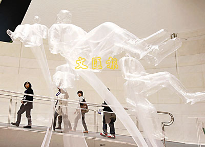 藝術創作天馬行空,這回竟然有飛人行空(還會穿衣服),真前衛。 法新社