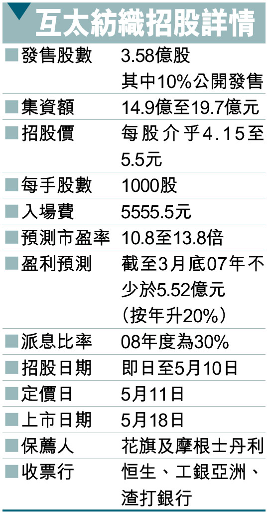 互太紡織招股詳情 (圖)