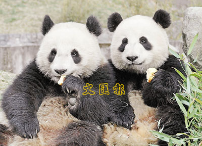 ■樂樂(右)、盈盈這對熊貓國寶來港僅半月,對被呼喚新名字已懂得回應。資料圖片