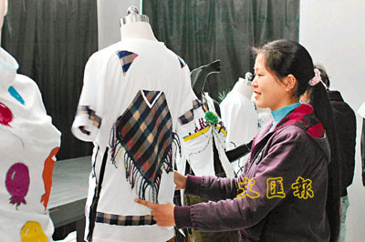 ■時裝設計與產品開發專業班的學生正在設計功課。 本報四川傳真