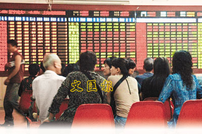 ■飄紅的交易所坐滿了滿懷期待的股民。黃瑞庚 攝