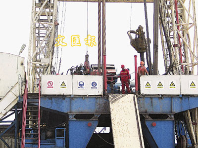 ■南堡油田上,來自全國各大兄弟油田的技術工人正在辛勤勞作。 a