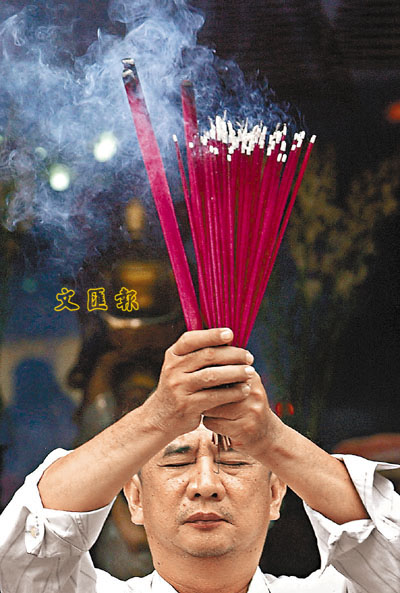 ■根據國家行政學院課題組調查顯示,內地有52.4%的縣處級官員迷信。圖為一名民眾在燒香拜神。 資料圖片