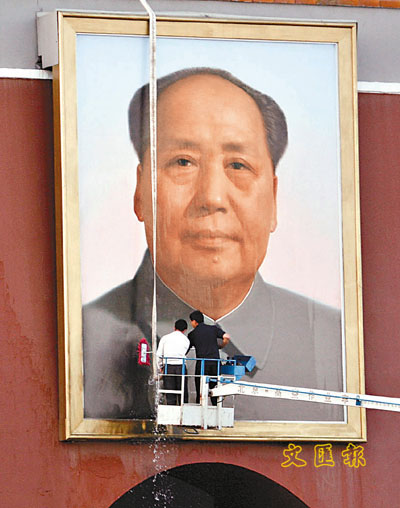 另據外電報道,懸掛在北京天安門廣場城樓的毛澤東畫像,是由北京中央美術學院的肖像畫家張振仕教授於1950年所畫。在1989年,內地記者喻東嶽曾向毛澤東畫像投擲裝滿紅漆的蛋殼而被捕,判監16年,至去年2月才獲釋。