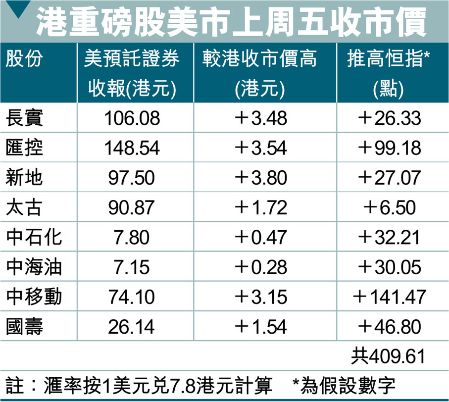 港重磅股美市上周五收市價 (圖)