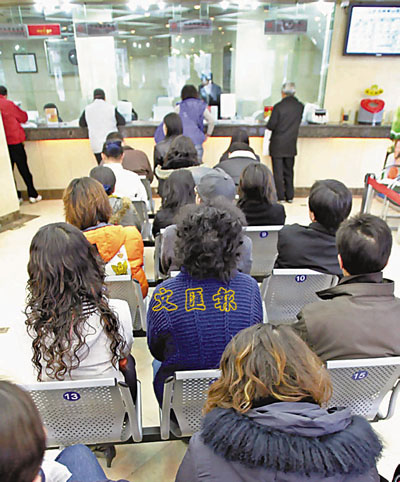 ■上海銀行內排長龍已是司空見慣的老大難問題。
