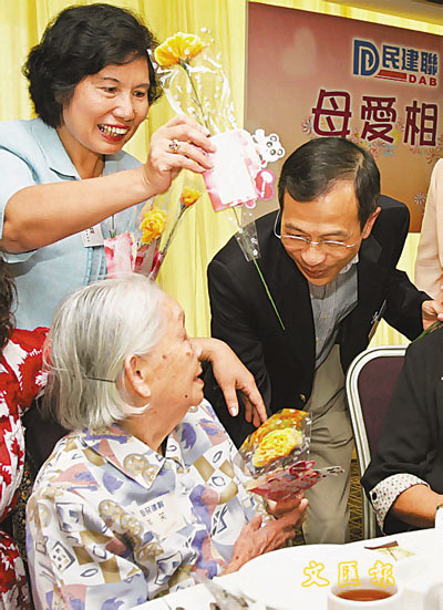 這樣的溫馨情景,並非電視劇虛構的情節,而是民建聯婦女事務委員會舉行「母愛相傳頌親恩」大行動中的真實鏡頭。民建聯婦女事務委員會昨日共邀請了10個五代及四代同堂的母親共聚一堂,共同分享孝順之道,傳遞母親節愛心的訊息,並即席向摯愛的母親獻上一吻。