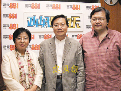 ■張炳良(中)接受商台節目主持人訪問。