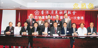 【本報訊】香港廣東社團總會最近開展會董會換屆選舉工作,並於日前選舉產生第5屆會董會各組織架構成員。全國政協常委、香港特別行政區中小型企業委員會主席余國春蟬聯主席,副主席共15人,包括:陳永棋、唐學元、羅景雲、林光如、馬介璋、蘇計成、李歡、楊鑫、楊志紅、鄧祐才、王國強、霍震宇、吳惠權、劉劍明、王賜豪。會上又選出首席會長沈廣河,會長有:許智明、戴德豐、葉樹林、李文達、岑傑英、馬介璋。秘書長由歐陽成潮連任,副秘書長共10人。
