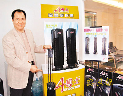 ■梁正中會長對環保型A博士空氣淨化器在港銷售前景充滿信心。 本報記者鄭群 攝