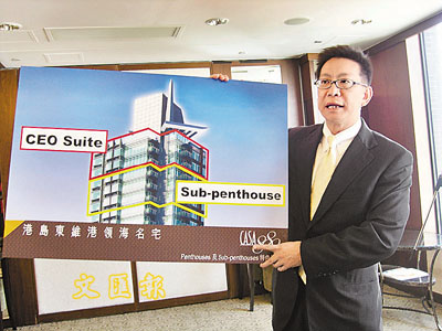 ■長實袁添鴻介紹下周推售的則魚涌 CASA 880 最頂5層特色戶。本報記者梁悅琴 攝