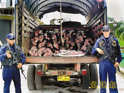 哥倫比亞執法人員表示:「亞洲非法集團操縱偷運鯊魚魚翅的路線和黑市市場,透過勾結哥倫比亞漁民和分銷商獲得鯊魚魚翅供應。」