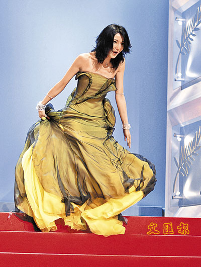 ■張曼玉的裙襬太長,伊人差點絆倒。美聯社