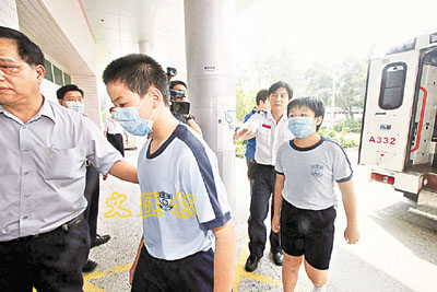 ■3名懷疑食物中毒的學生送院。本報記者蔣焯文 攝