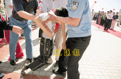 ■18日上午,河北省科技活動周開幕儀式在蒿木城人民廣場舉行,領導一個接一個唸開幕詞。隊列中一名小學生耐不住烈日炙烤,栽倒在水泥地上。
