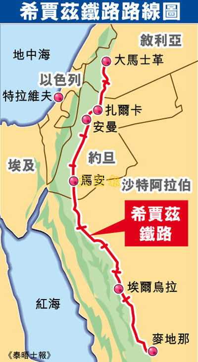 【本報訊】約旦政府前日在世界經濟論壇上,簽署合約重建有百多年歷史的希賈茲鐵路。鐵路將由中國鐵路工程集團、巴基斯坦基礎設施發展公司和約旦公司組成的聯合公司承建,斥資1.8億英鎊(約28億港元),被視為中國於當地歷來最具影響力的投資項目。