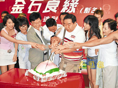 ■無線劇《金石良緣》試造型,碰巧鄭則士生日,大家齊唱生日歌、切大壽包為ken哥賀壽。