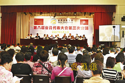 【本報訊】新界社團聯會第8屆第3次會員代表大會,日前於大埔社區會堂舉行,227位代表出席了大會。副會長羅建平主持當日的大會,會長張學明首先作了題為「內強素質 外樹形象 努力拚博 再創佳績」的致辭,闡明了該會今年的主要工作和任務,並提出了具體要求。