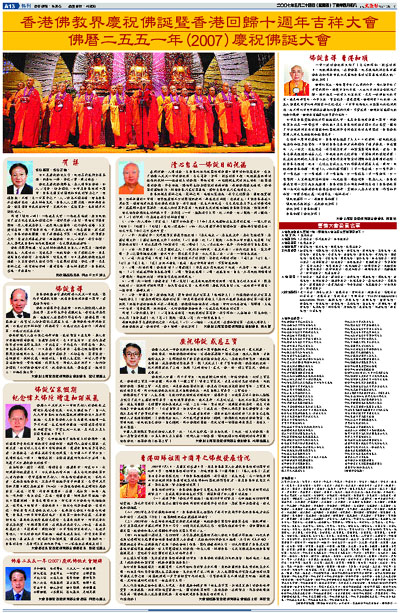 香港佛教界慶祝佛誕暨香港回歸十週年吉祥大會 佛曆二五五一年(2007)慶祝佛誕大會