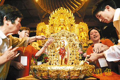 24日,中國佛信徒在上海龍華廟參與佛誕慶祝活動。路透社