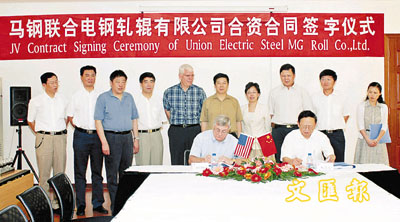 馬鋼股份總經理朱昌逑和聯合電鋼公司董事長Siddons分別代表雙方簽字,馬鋼聯合電鋼軋輥合資企業將開發、加工、生產、銷售大型鍛鋼支撐輥。預計該項目於09年建成投產,投產後每年生產大約10,000噸的成品支撐輥,除可以滿足馬鋼對軋輥的需求外,還可以供應周邊鋼廠的需求。
