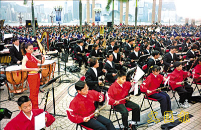■香港中樂愛好者在尖沙咀的大型中樂表演。 資料圖片